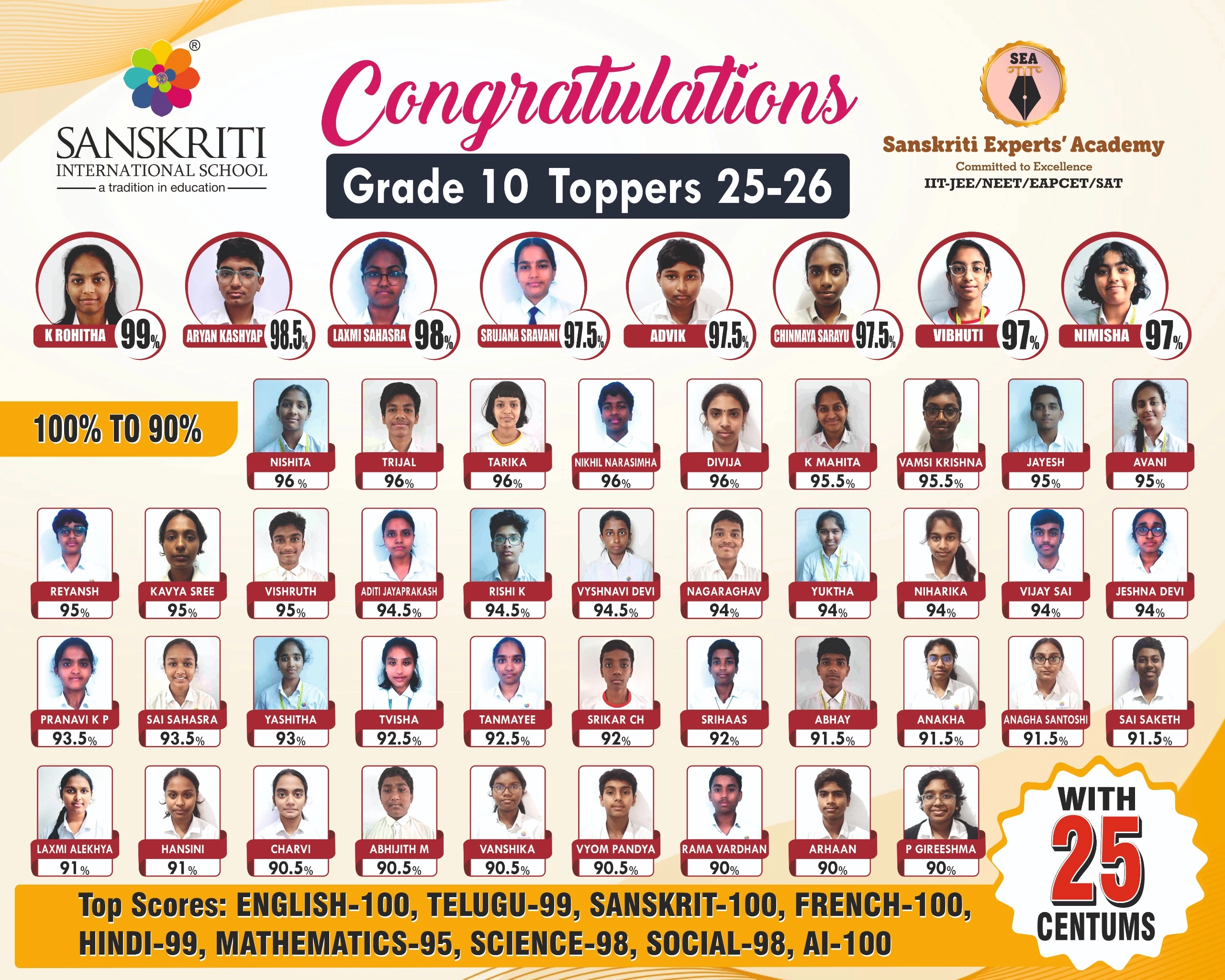 Our students proved once again that when passion meets the right environment, excellence follows. With 25 centums, a 100% pass rate, and top scores across every subject — this is what Sanskriti is made of.